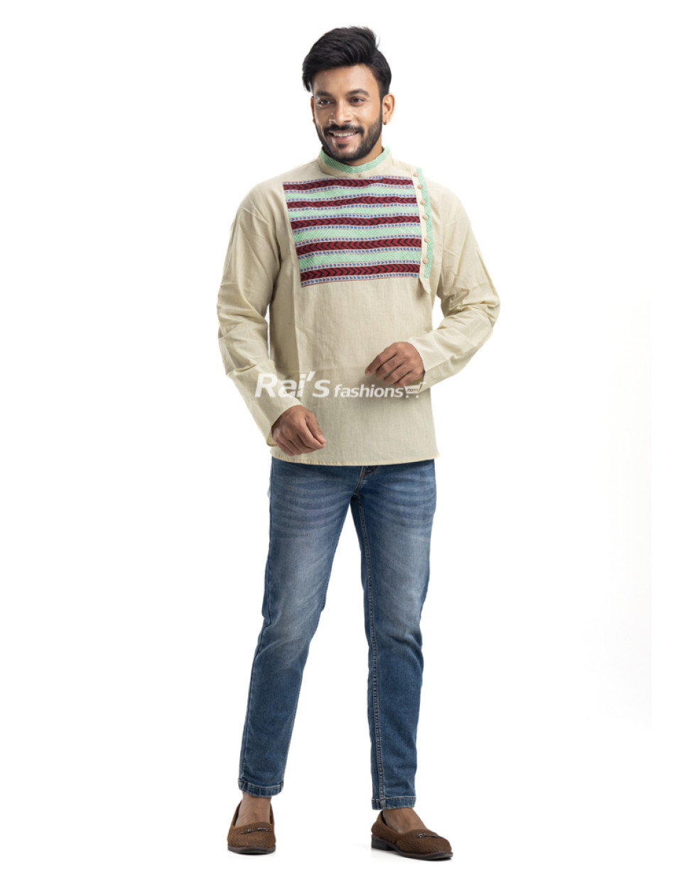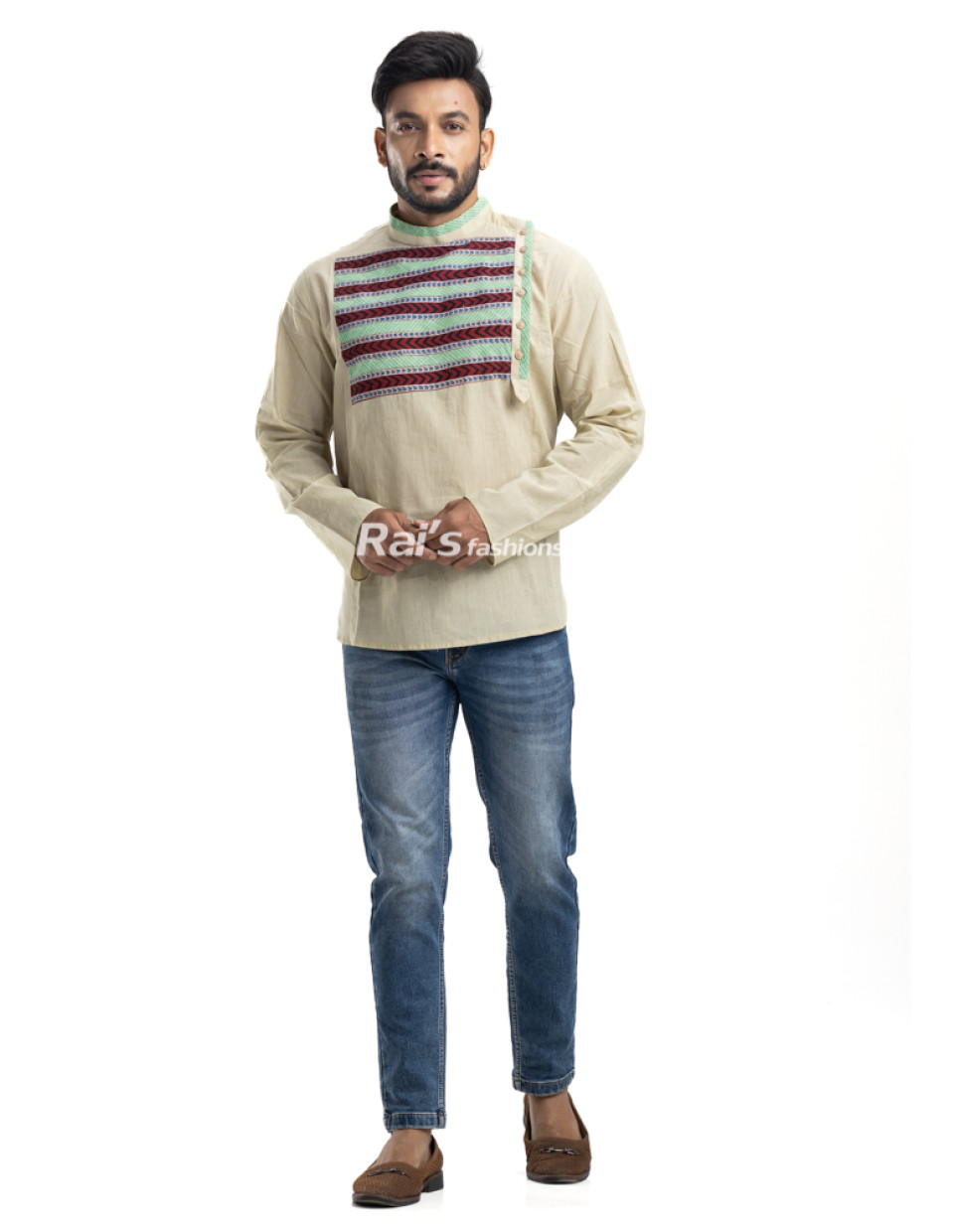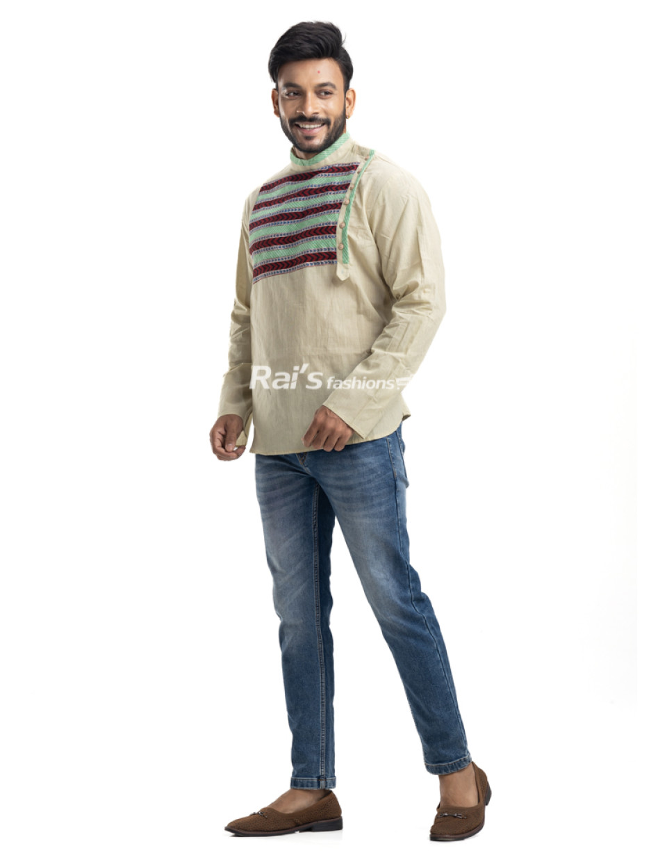 Tags: Cotton Short Kurta, Cotton Short Kurta With Contrast Color Patch Work, Short Kurta