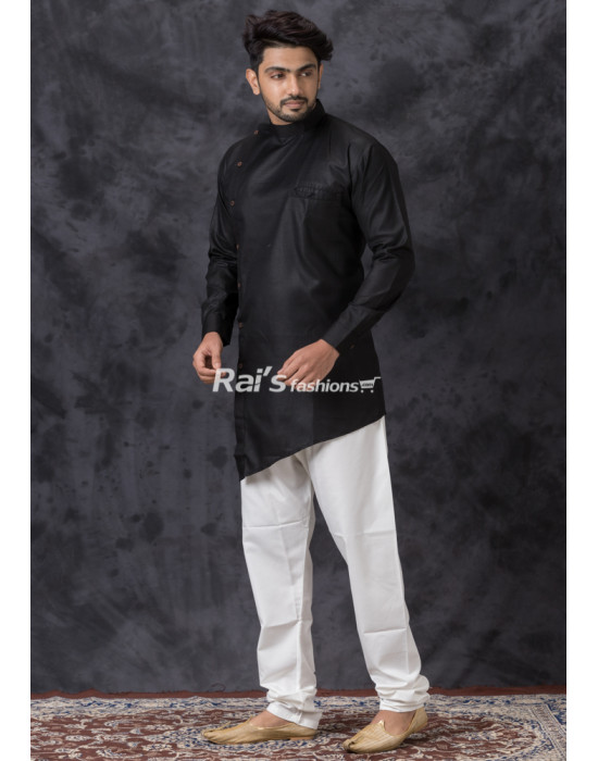 Princess Cut Black Cotton Silk Men Kurta (KR1341)