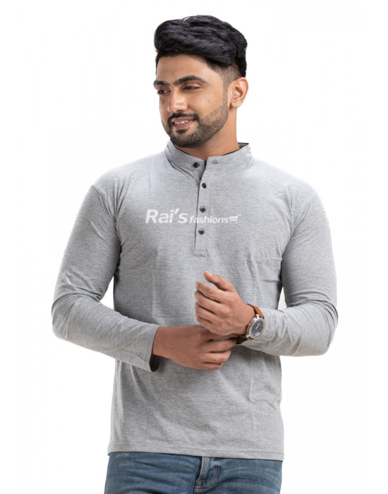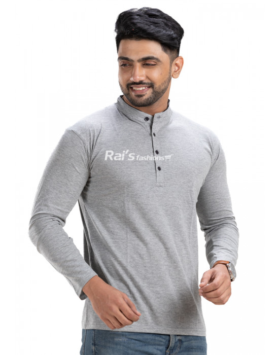 Tags: Cotton T-shirt, Regular Fit Solid Henley Neck Full Sleeve Cotton T-shirt, Men Dress
