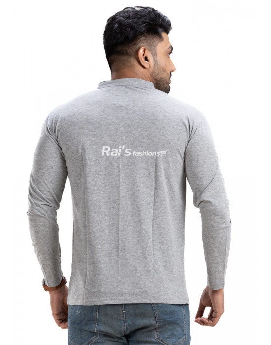 Regular Fit Solid Henley Neck Full Sleeve Cotton T-shirt (NS54)