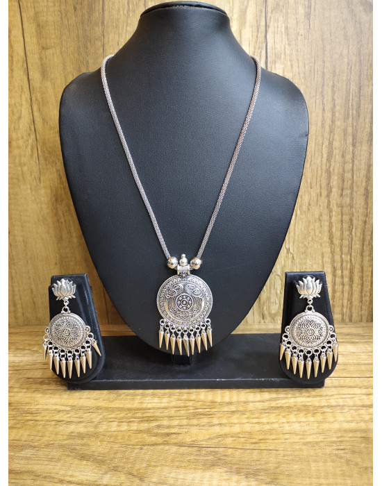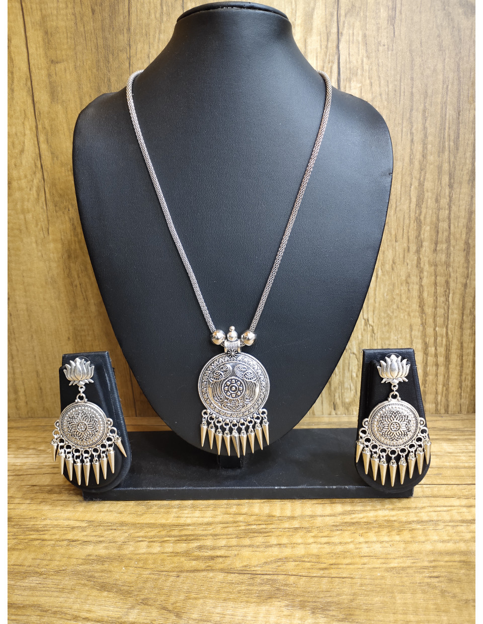 Silver Oxydize Chain With Nice Pendant And Earrings (RAI10074)