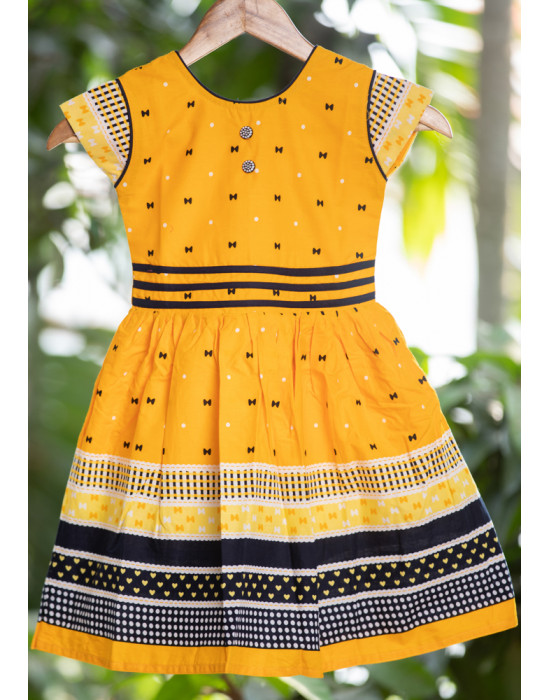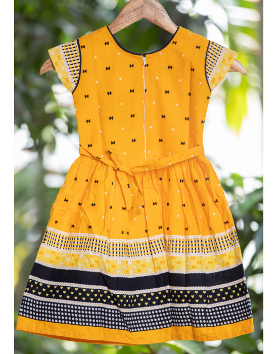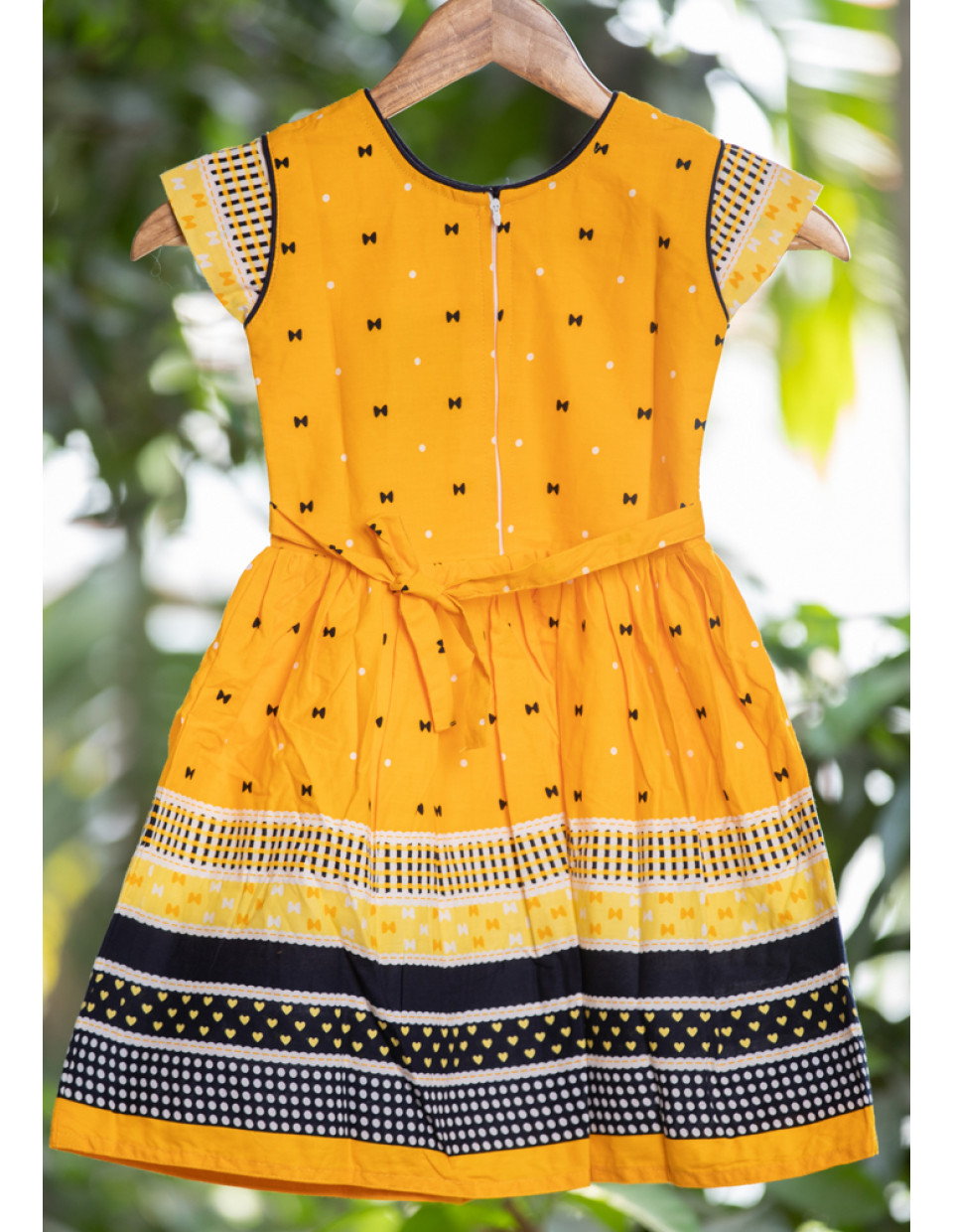 Tags: Cotton Kids Dress, All Over Bow Printed Yellow Cotton Kids Dress, Kids Dress
