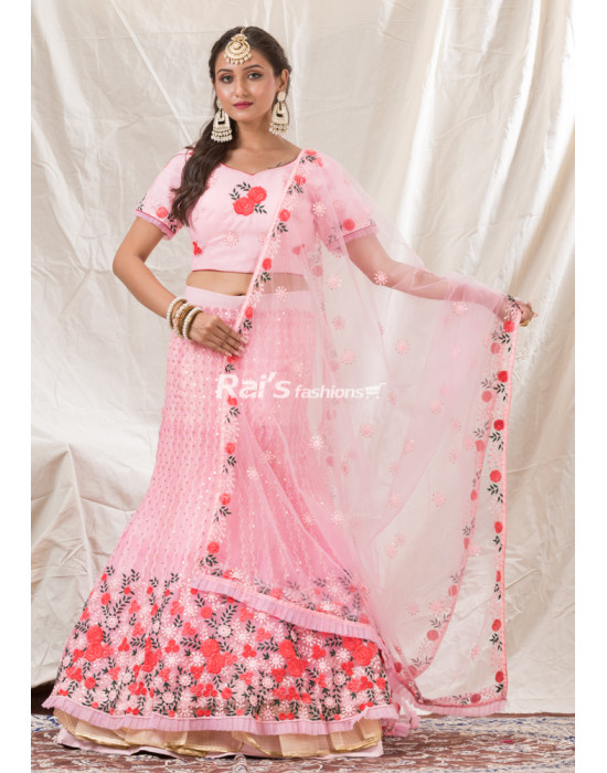 Tags: Net Designer Lehenga, All Over Embroidery Work Design Pink Designer Lehenga, Designer Lehenga, Fancy Lehenga, Party Wear Lehenga