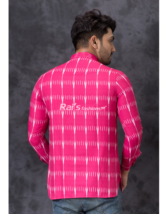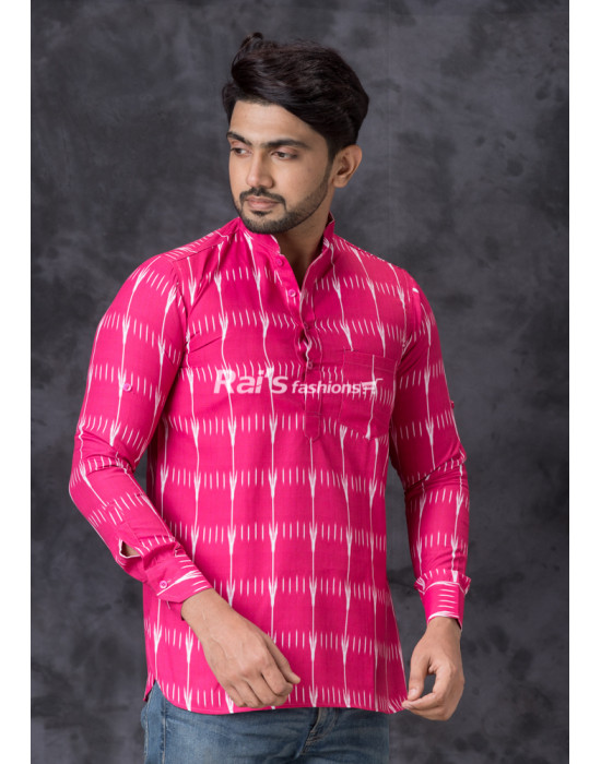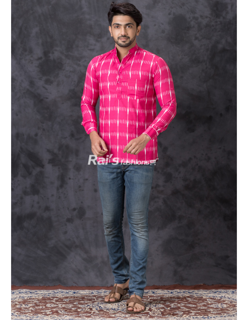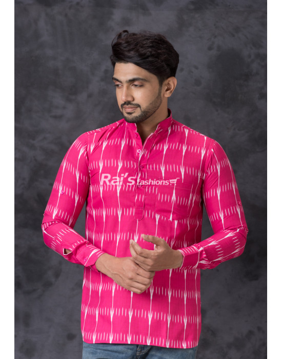 Tags: Cotton Silk Short Kurta, All Over Ikkat Pattern Short Kurta, Men Dress
