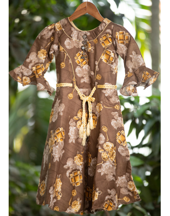 All Over Printed Rayon Cotton Kids Dress (KR1185)