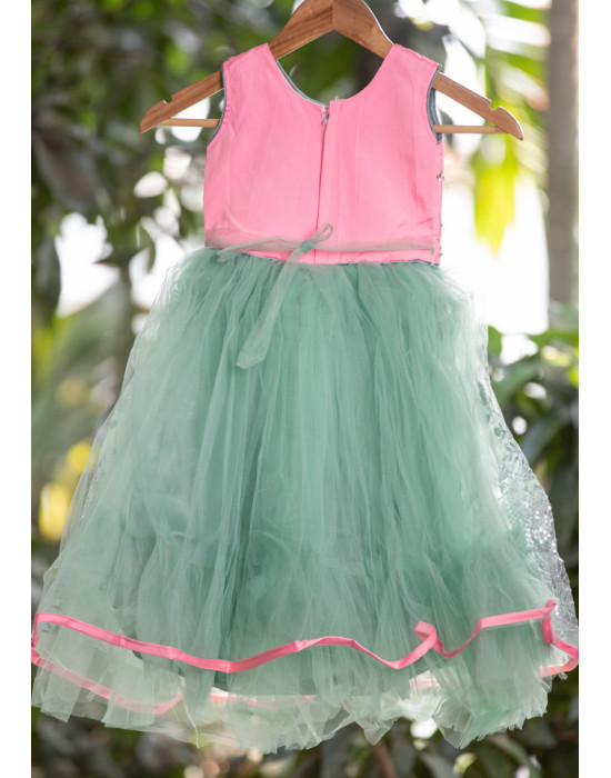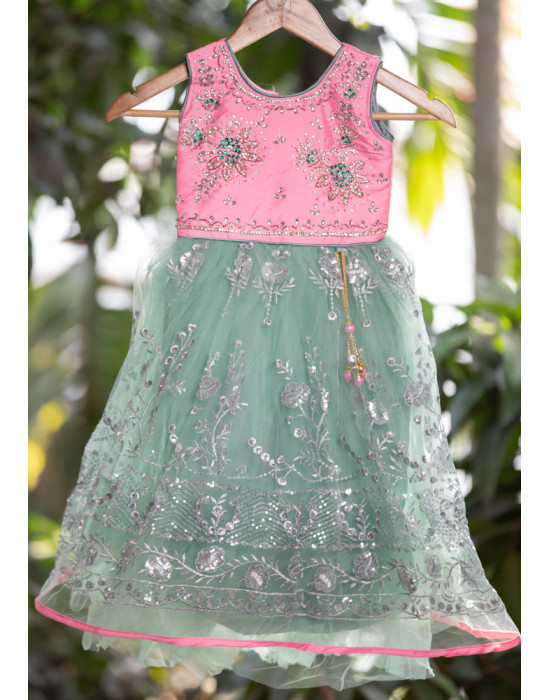 Tags: Silk And Net Frock, All Over Sequence And Stone Work Frock, Kids Dress