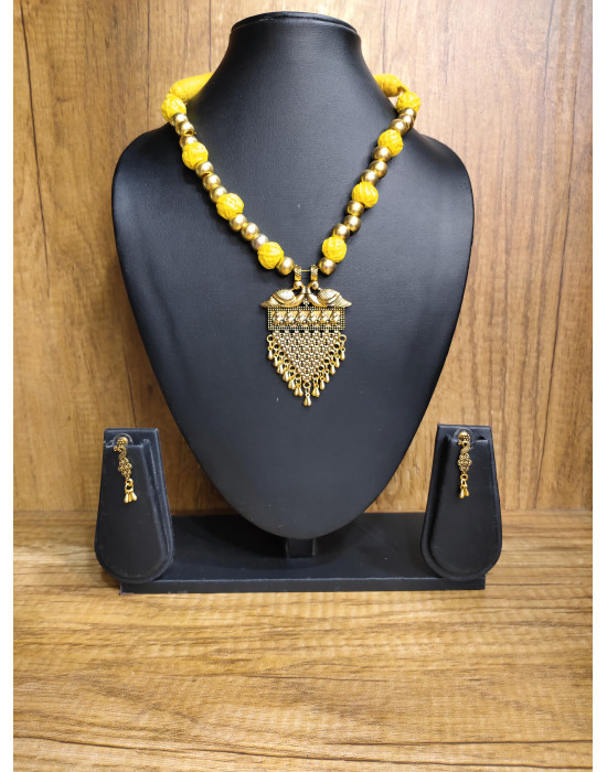 Cotton Ball And Golden Ball Combine Fancy Handmade Jewellery Set With Golden Pendant (KR425)