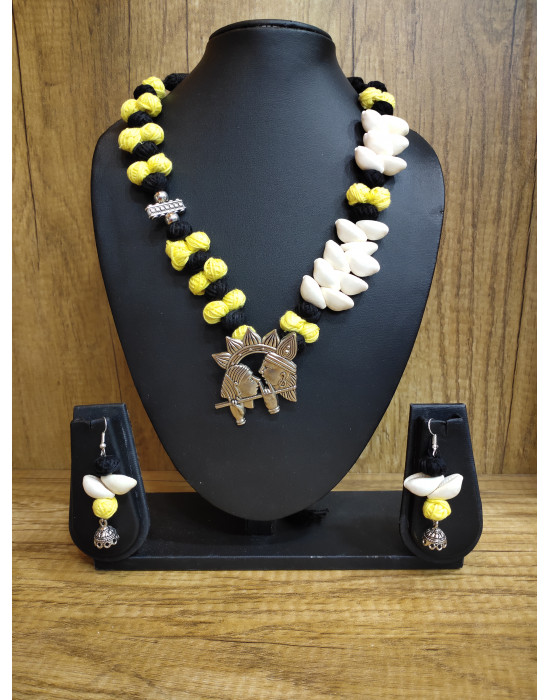 Cotton Balls With Silver Oxidize Charms And Sankh Combine Handmade Jewellery (MA21J015)