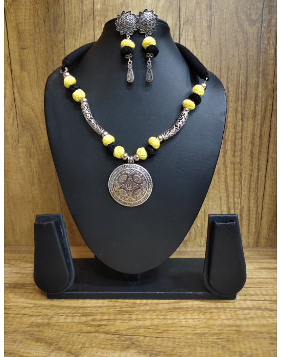 Cotton Balls With Silver Oxydize Charms And Pendant Combine Handcrafted Jewellery (RAI10082)