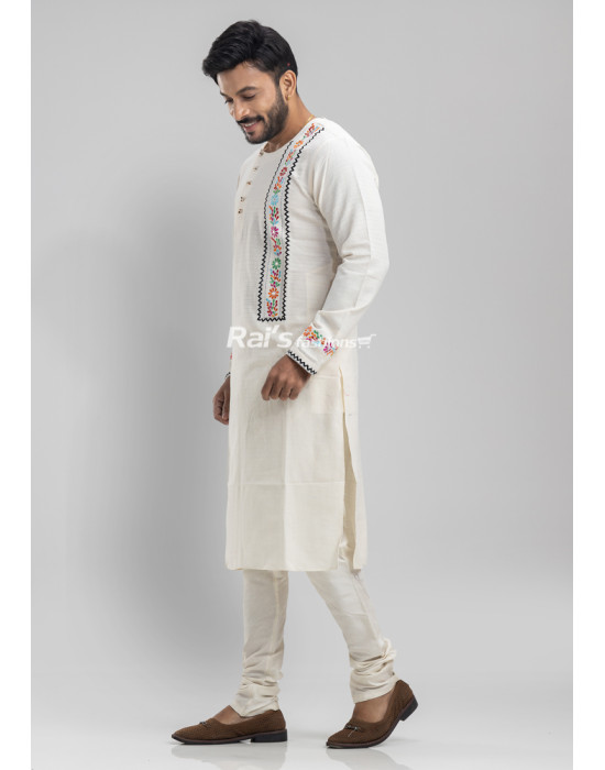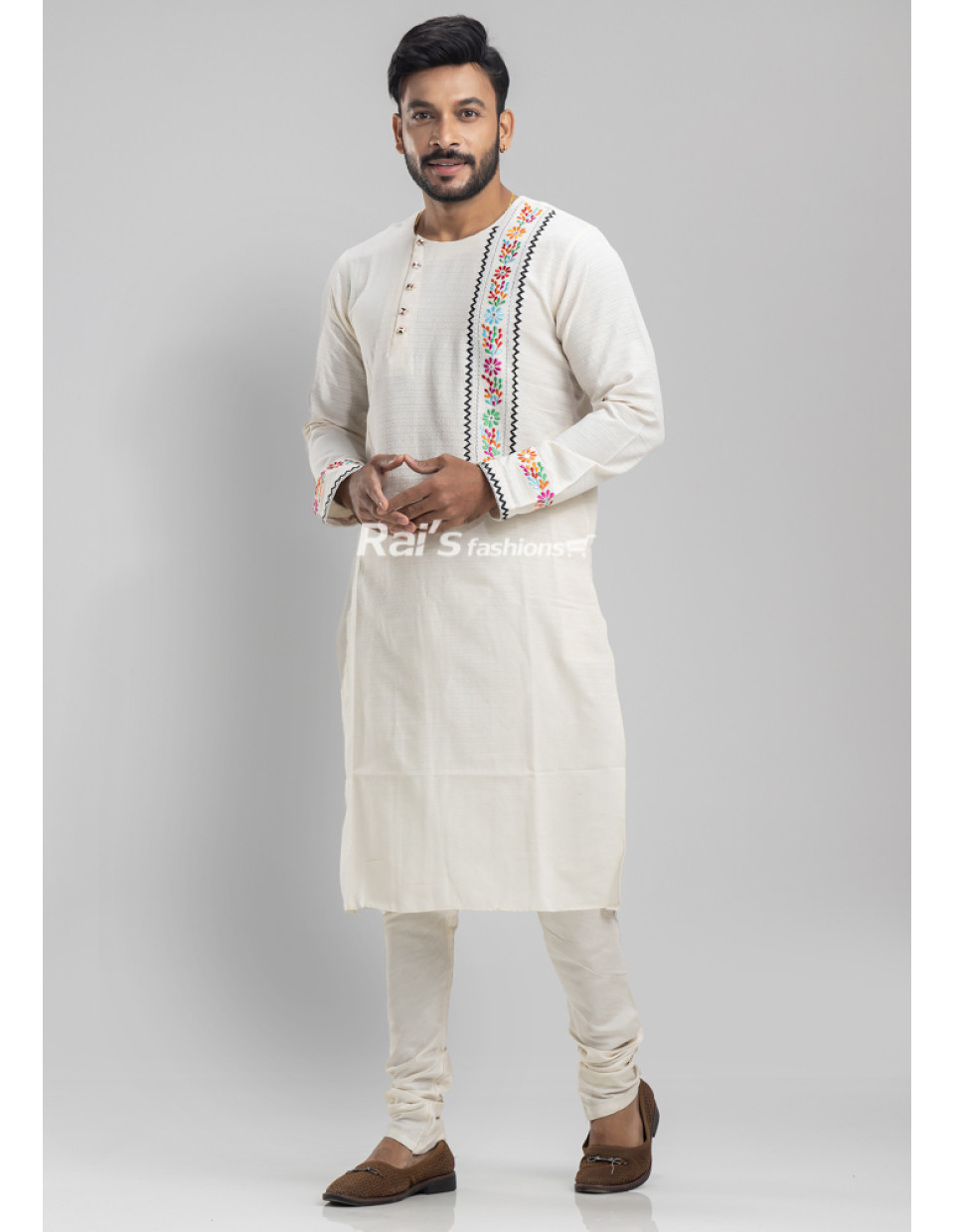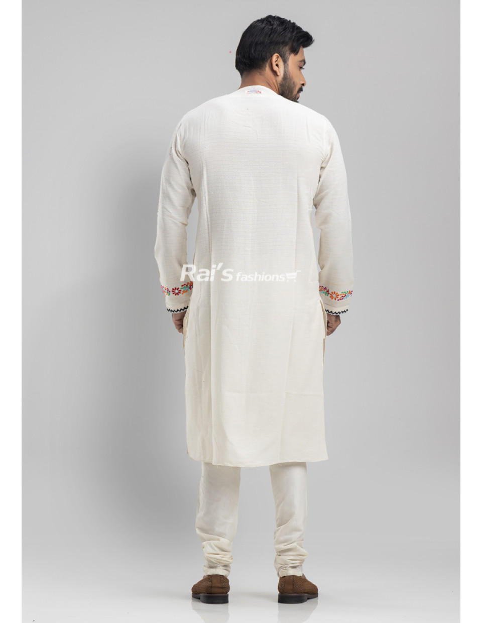 Cotton Self Weaving Long Panjabi With Embroidery Work (KRP10)
