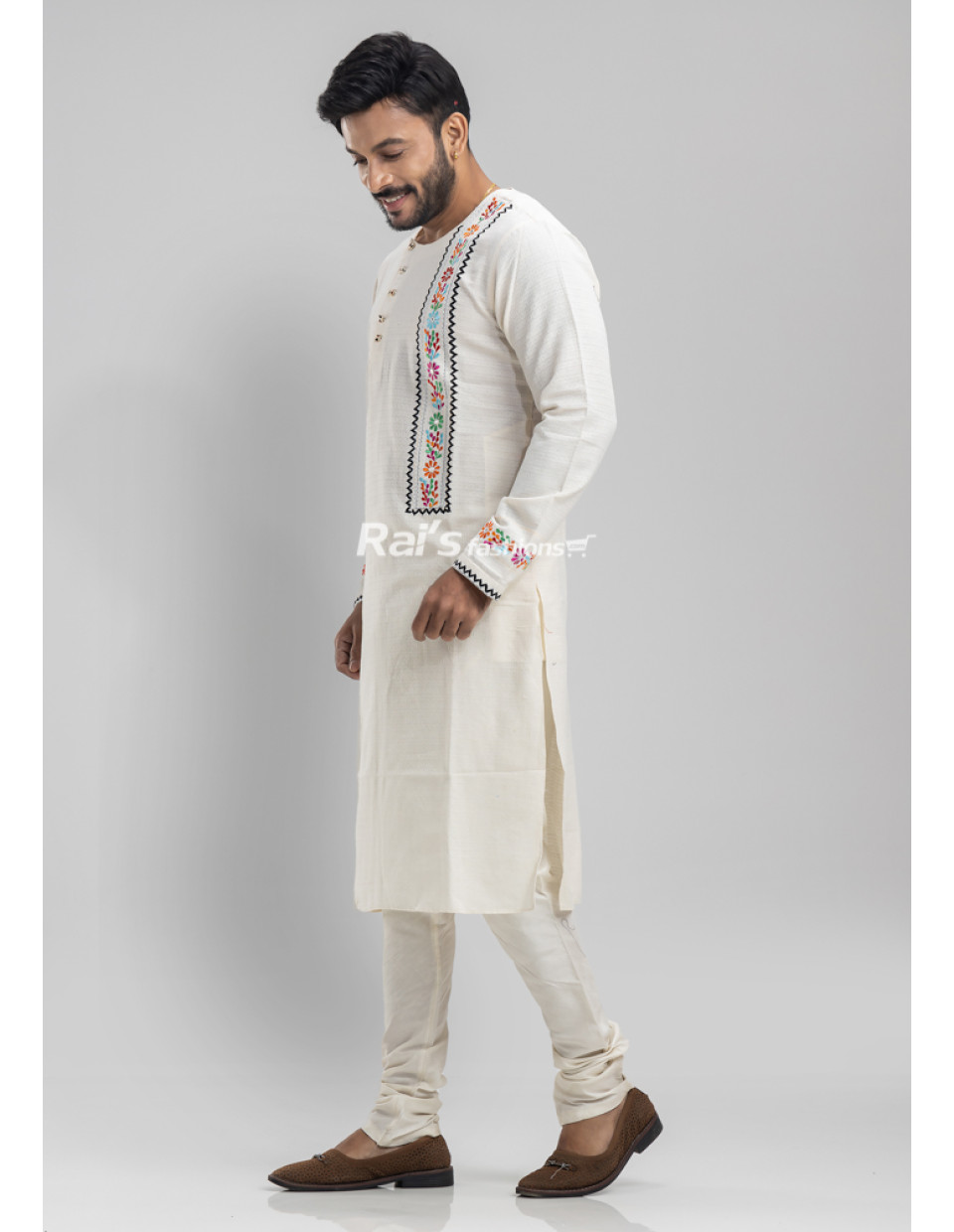 Tags: Cotton Long Panjabi, Cotton Self Weaving Long Panjabi With Embroidery Work, Long Panjabi