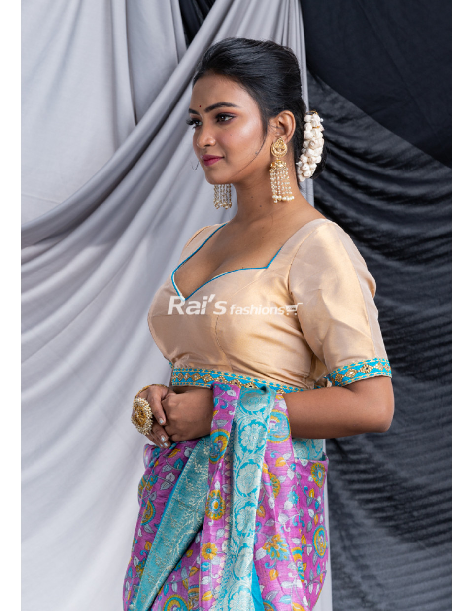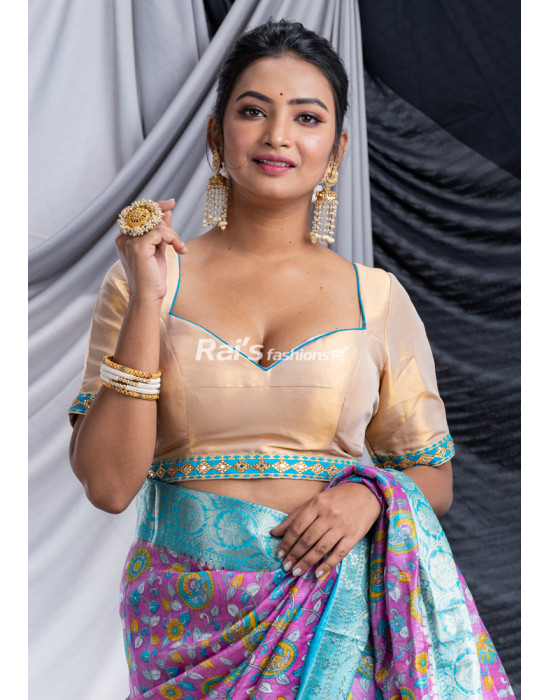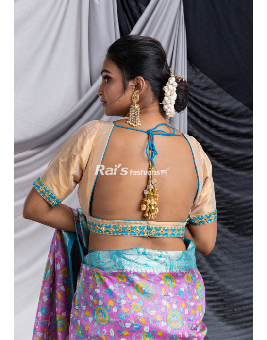Tags: Silk Designer Blouse, Embroidery Lace Bordered Beige Color Silk Designer Blouse, Designer Blouse