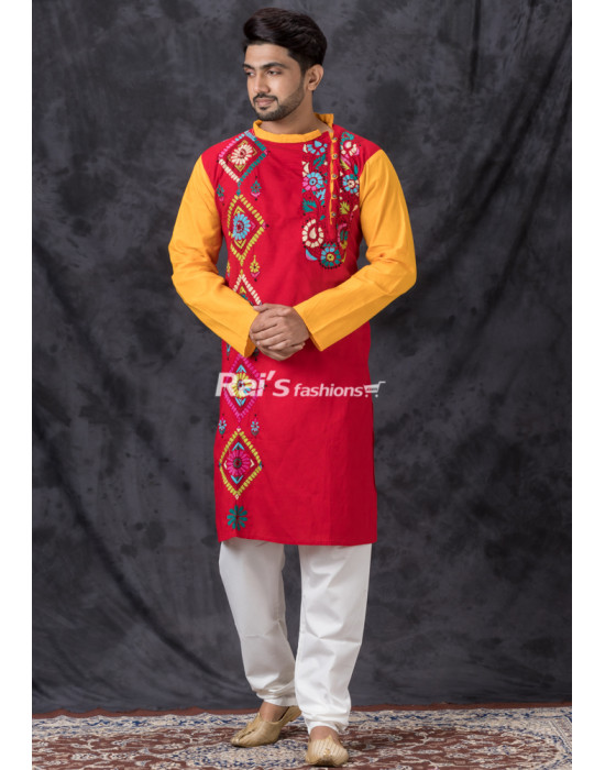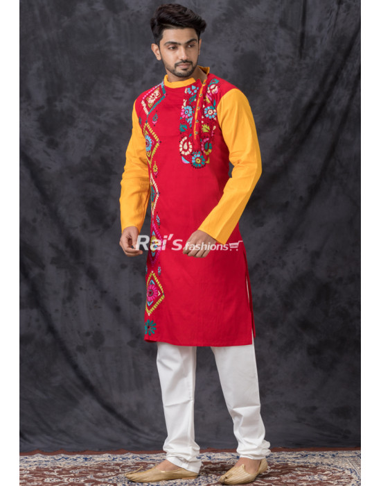 Tags: Cotton Punjabi, Embroidery Work Design Red Cotton Punjabi, Men Dress