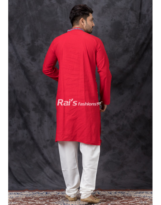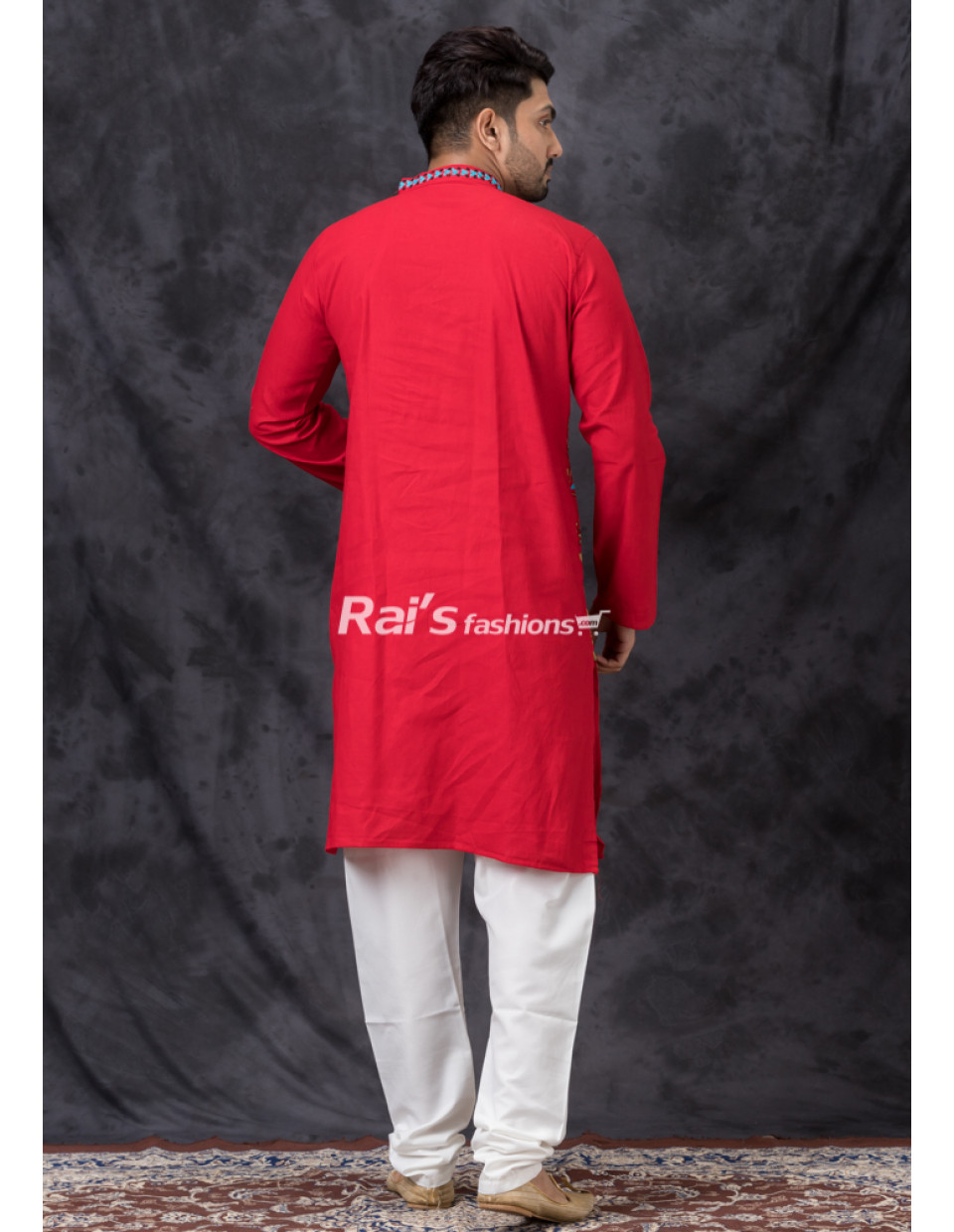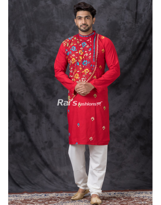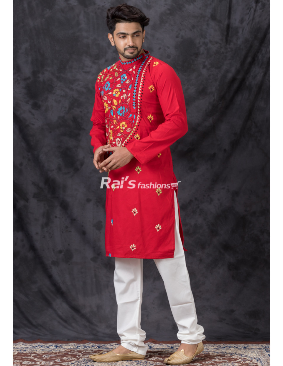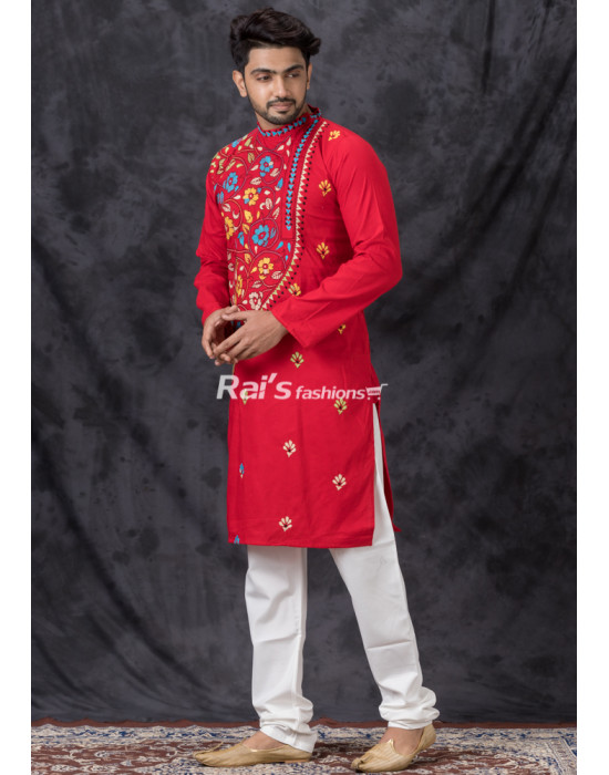 Tags: Cotton Men Punjabi, Embroidery Worked Red Men Punjabi, Men Dress