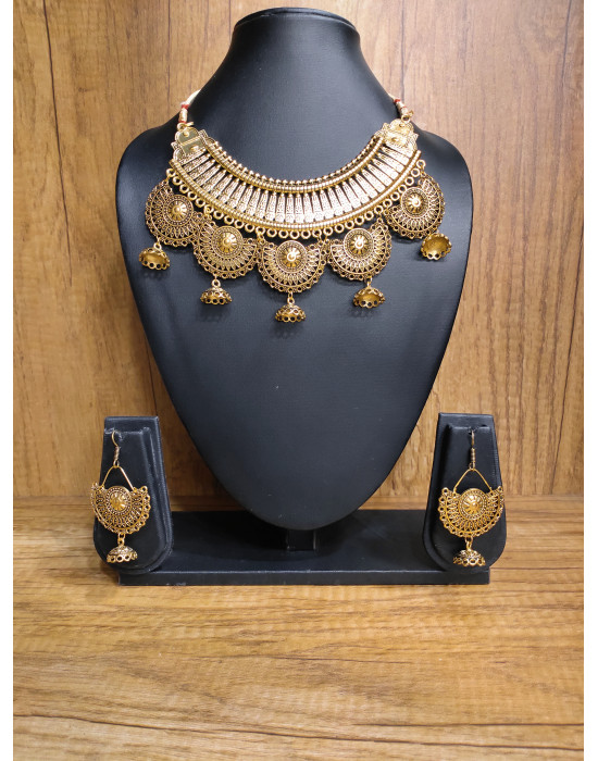 Golden Charms And Jhumka Combine Golden Oxidize Jewellery Set (KR415)