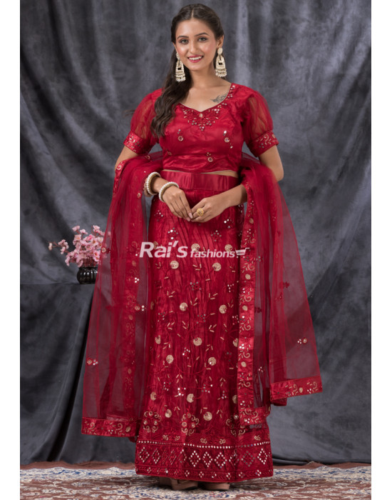 Tags: Net Designer Lehenga, Mirror And Sequin Worked Red Designer Lehenga, Designer Lehenga, Fancy Lehenga, Party Wear Lehenga