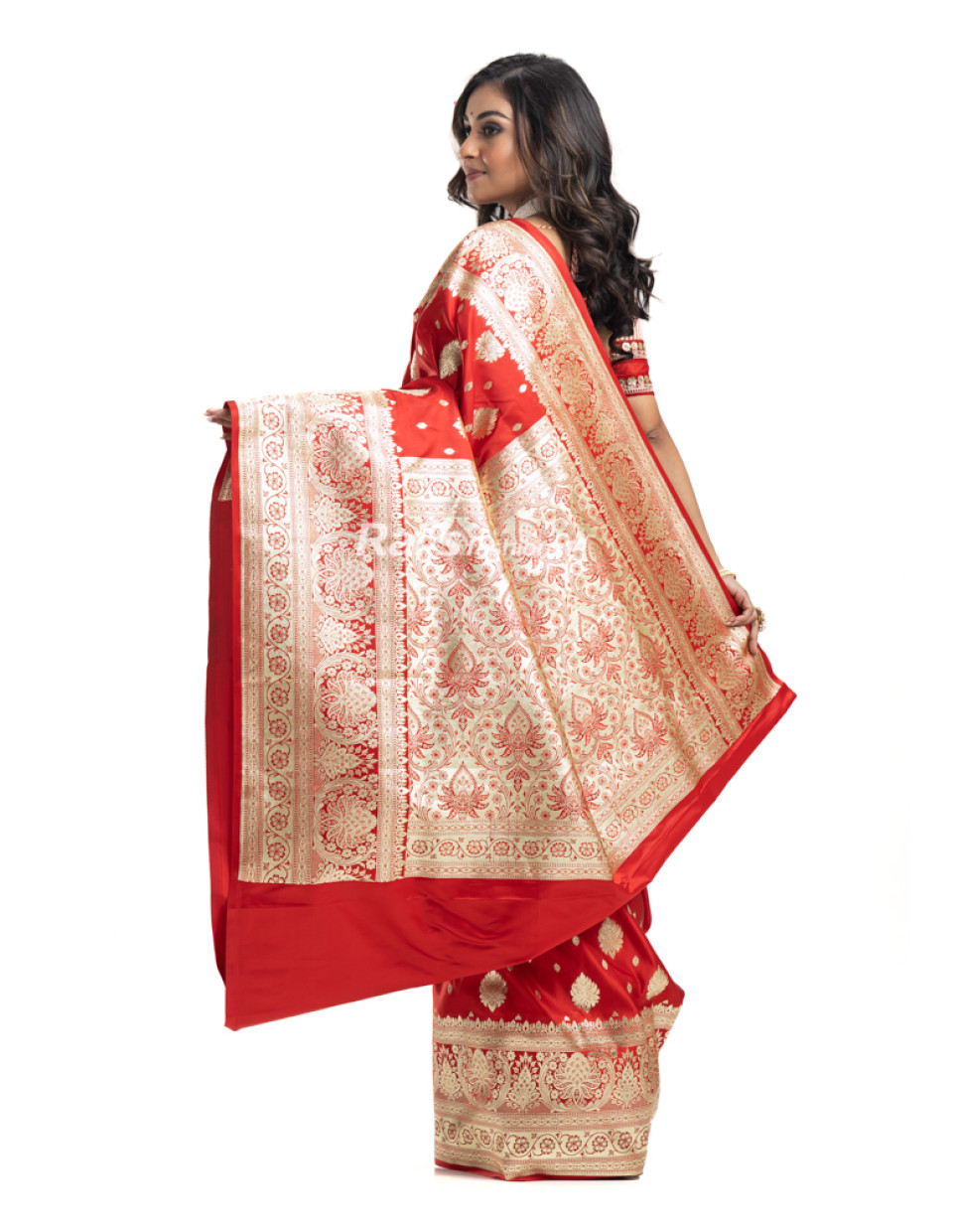 Premium Quality Red Satin Katan Banarasi Saree With All Over Traditional Banarasi Butta Weaving Work (KR2224)