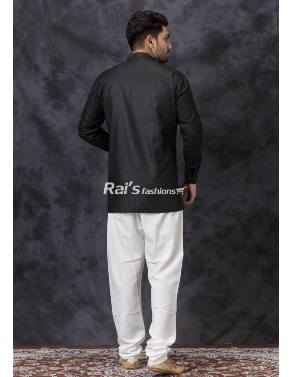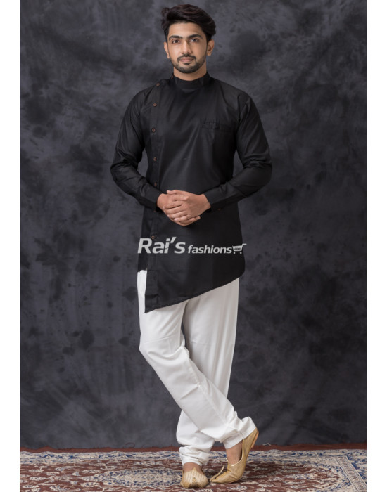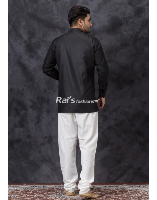Princess Cut Black Cotton Silk Men Kurta (KR1341)