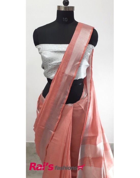Pure Handloom Tissue Cotton With Silver Zari Border.