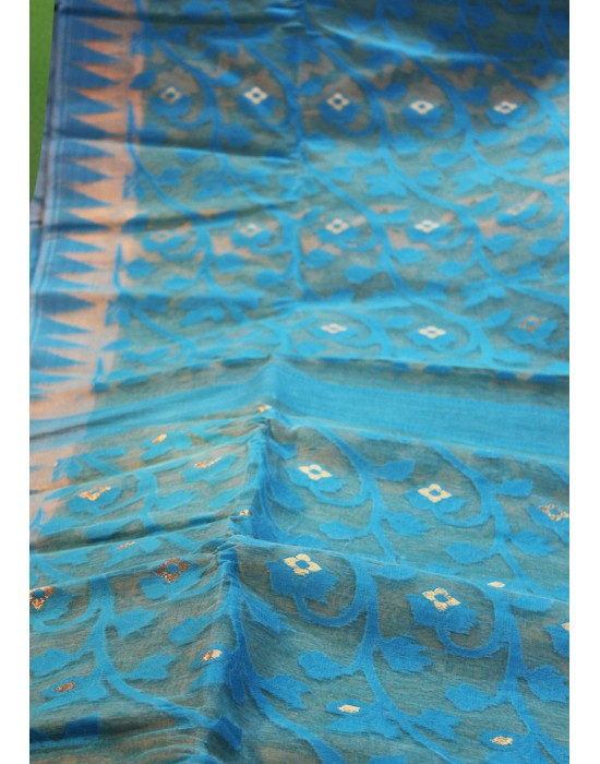 This is Pure Cotton Reshom Dakai blue shade saree.