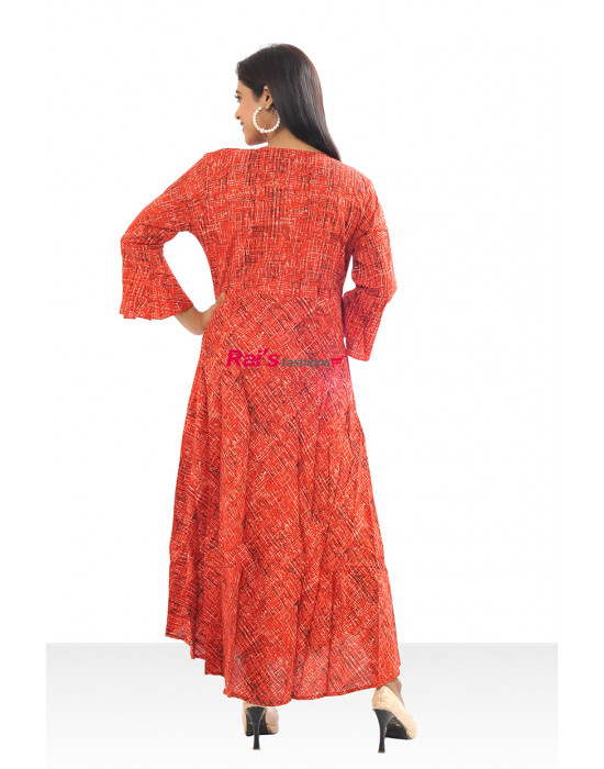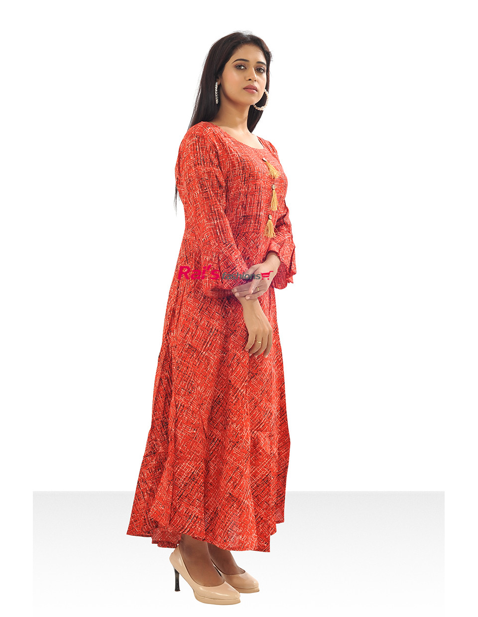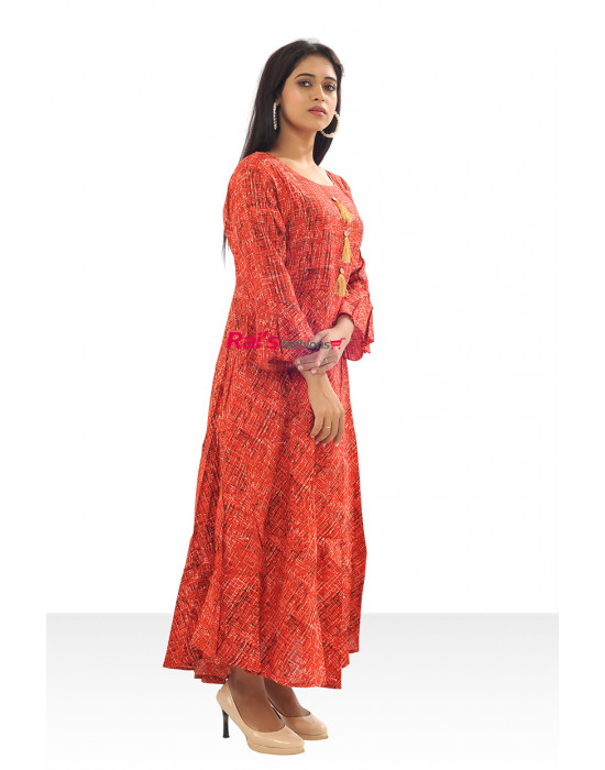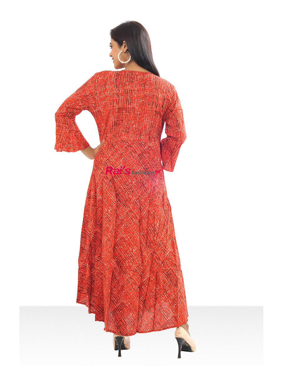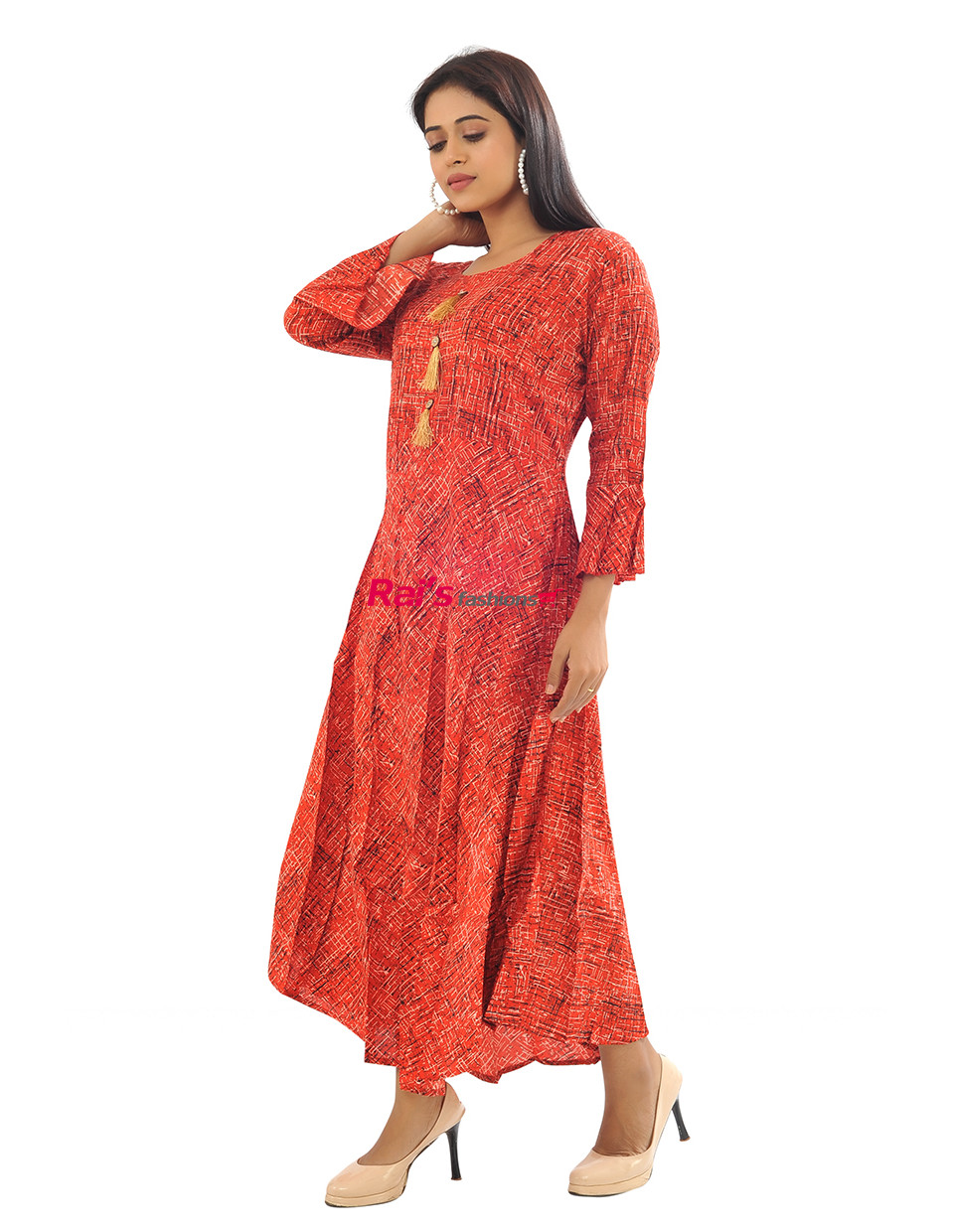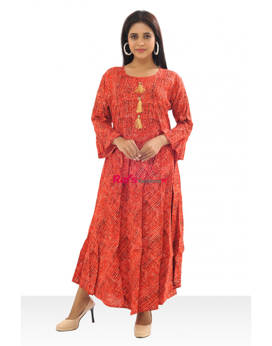 Tags: Cotton Gown, Red Color Cotton Gown, Round Neck Cotton Gown, Daily Wear Gown