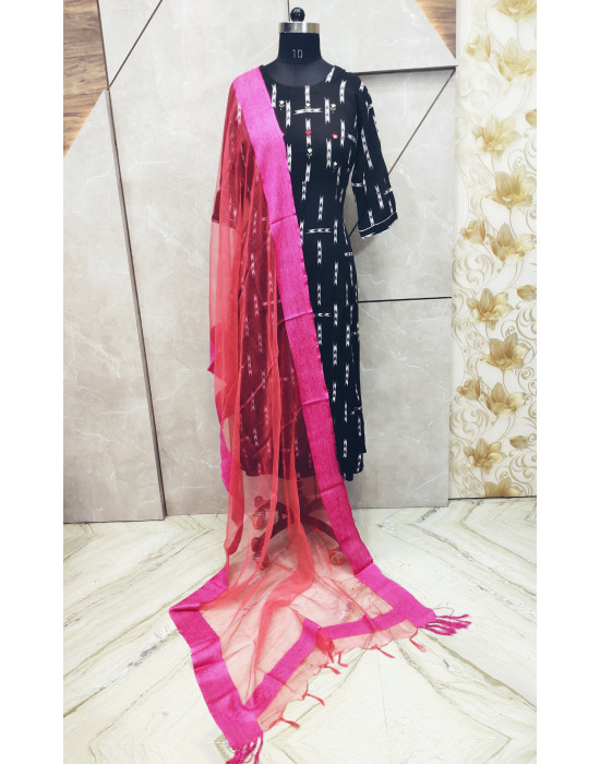 Self Weaving Border Design Rani Organza Dupatta (KR673)