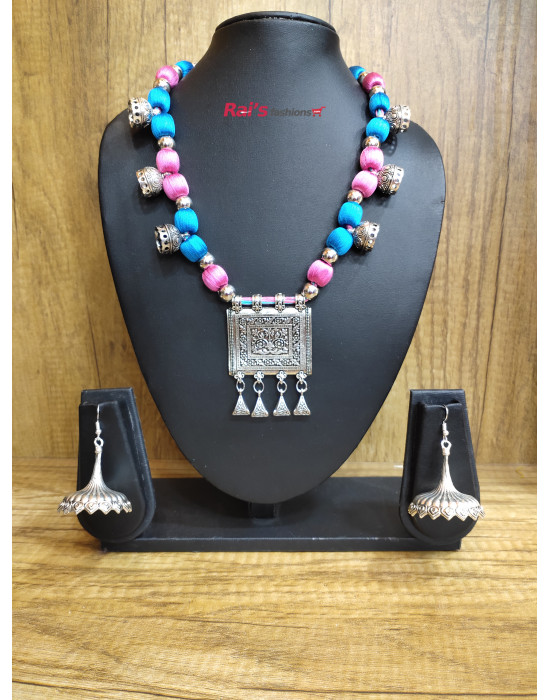 Metal / Material: Silver Charms, Pendant, Silk Balls.