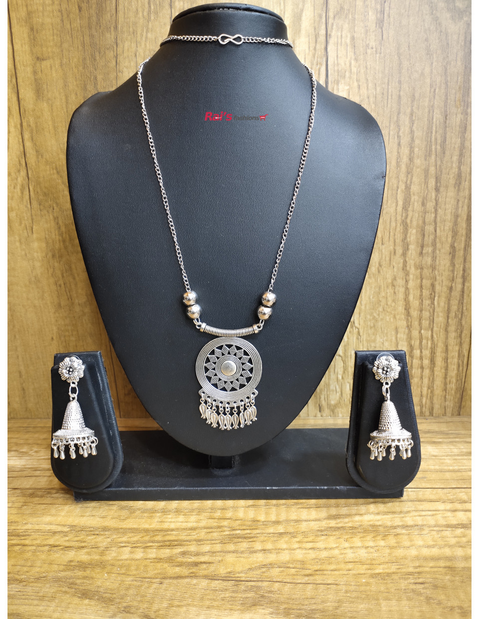 Silver Oxydize Chain With Nice Pendant Combine Fancy Jewellery (RAI10090)