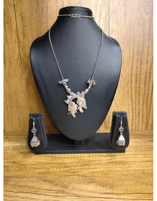 Silver Pendant And Beads Combine Chain With Fancy Earrings (KR468)