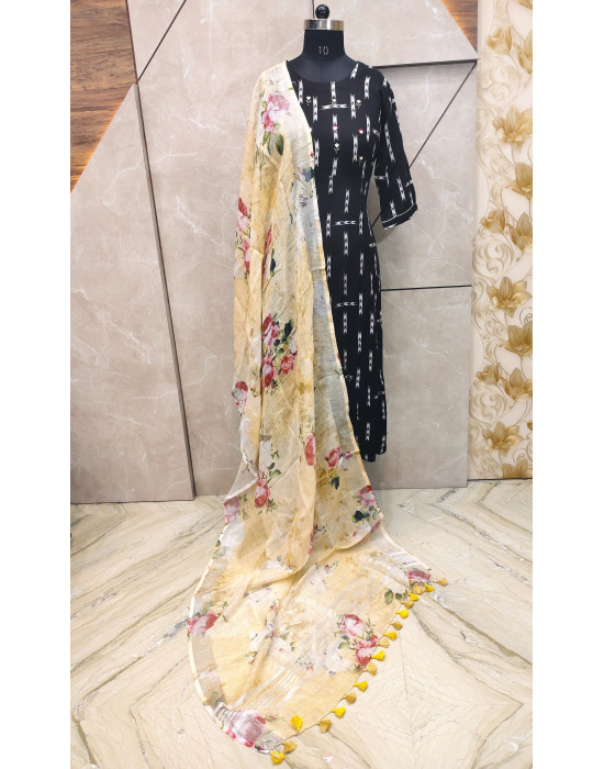 Yellow Digital Printed Linen By Linen Dupatta With Silver Zari Border (KR670)