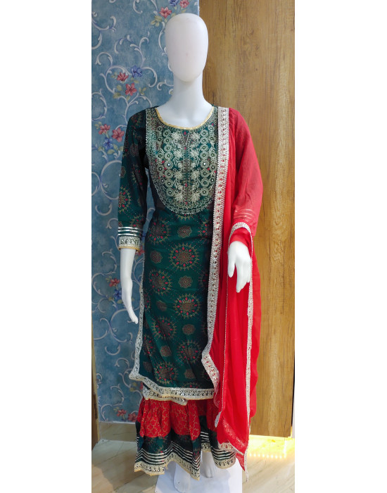 Zari Embroidery Work Kurti Sarara Set (KR1895)
